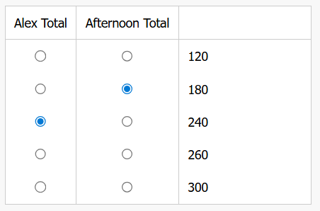 | # of tickets sold in afternoon ($4/each) | # of tickets sold in Evening($6/each) | Total earnings | ||
