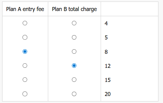| Plan A entry fee | Plan B total charge | |