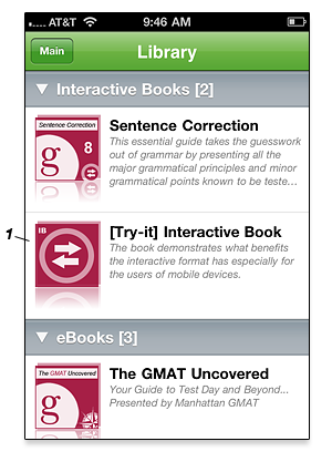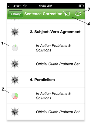 Manhattan GMAT Sentence Correction book in interactive format (stats, history, OG Tracker integration etc; see screenshots above)