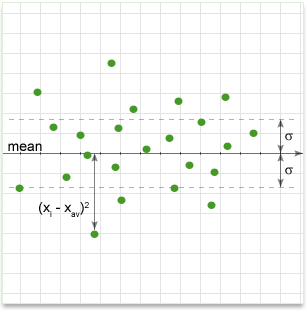\(variance = \frac{\sum(x_i - x_{av})^2}{N}\)