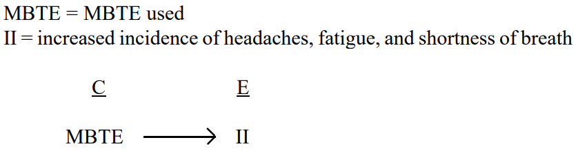 (C) Since the time when gasoline containing MBTE was first introduced in a few metropolitan areas, those areas reported an increase in the number of complaints about headaches, fatigue, and shortness of breath.