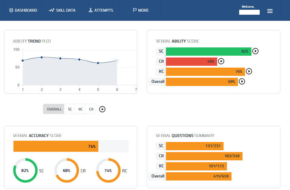 For SC, my accuracy has been 70% on an average. For CR, for the first 80% of the questions my average was 80-90%, but it has dropped to 65-75% in the remaining 20% questions in the end. For RC, it's been a constant 85% from beginning till end, varying from RC to RC.
