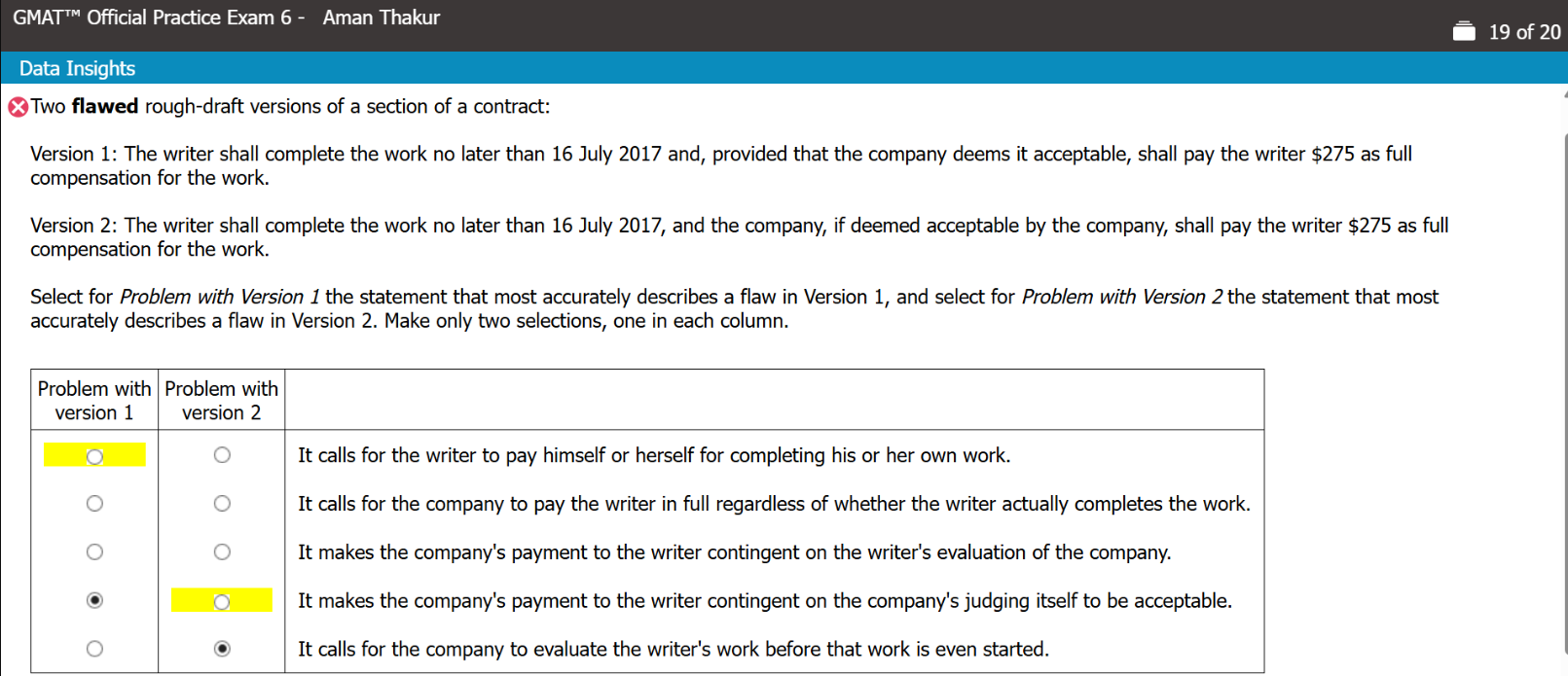 | It makes the company's payment to the writer contingent on the writer's evaluation of the company. | ||