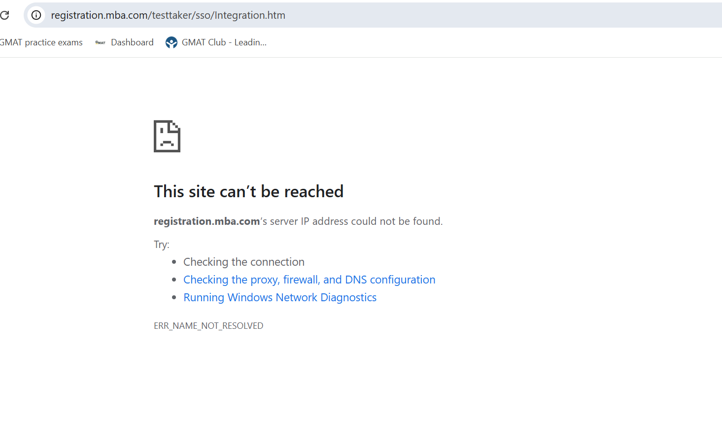 I want to reschedule my GMAT examination. I am going back to the registration page under my account at mba.com. However, when I click the link which says 'Reschedule >', the website says 'this page cant be reached'. Have been trying this for 2 days with the same result.