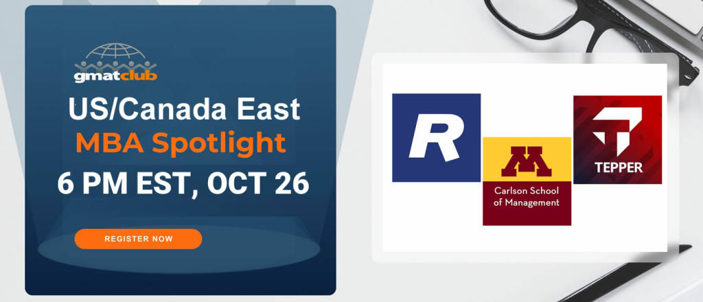 | MBA Spotlight Regional MBA Fair US/Canada East Coast Oct 26 from 6 PM - 8 PM | ||