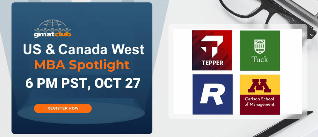 | MBA Spotlight Regional MBA Fair US/Canada West Coast Oct 27 from 6 PM - 8 PM | ||