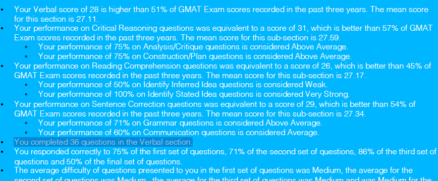 counted questions only: every GMAT Verbal section has 6 uncounted, experimental questions.
