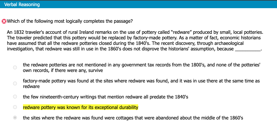 So basically, we need to find a strengthener which would substantiate the fact that usage of redware is not equal to production of redware. Because, "Economic historians have assumed that all the redware potteries closed during the 1840‘s."