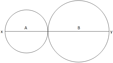 Since the length of xy is the length of the diameter of A plus the diameter of B, we need to find the diameter of each circle.