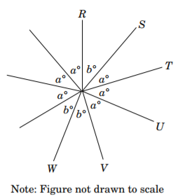 So we need an angle composed of one \(b\) and two \(a\)'s. Answer choices require us to start at R. Moving clockwise from R, we do not have much choice.