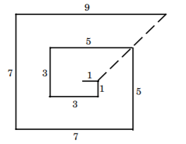 1. Extend right side of figure down - gray dotted line: whole side length = 7 (parallel to other side whose length = 7)