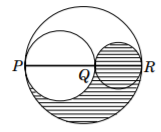 (\(\frac{1}{2}\) of shaded large Circle PR + \(\frac{1}{2}\) shaded little Circle QR)* - \(\frac{1}{2}\) unshaded medium Circle PQ