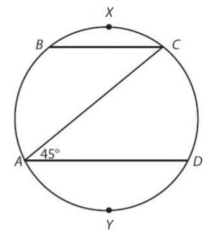(360° - 180°) = 180° remain for the arcs AYD and BXC