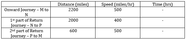 • For the onward journey M to N, the aircraft covered 2200 miles distance at 500 mph