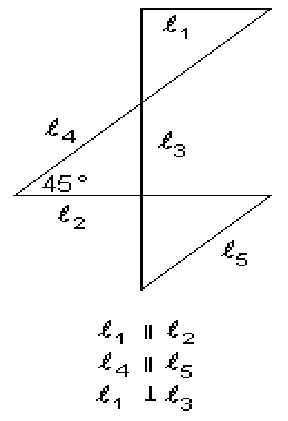 90° angles at A and E (two angles at E)Line 1 || Line 2