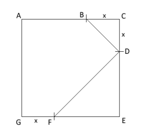 The square ACEG shown below (in the image attached) has an area of 36 units squared. What is the value of x that maximizes the area of the polygon ABDFG?