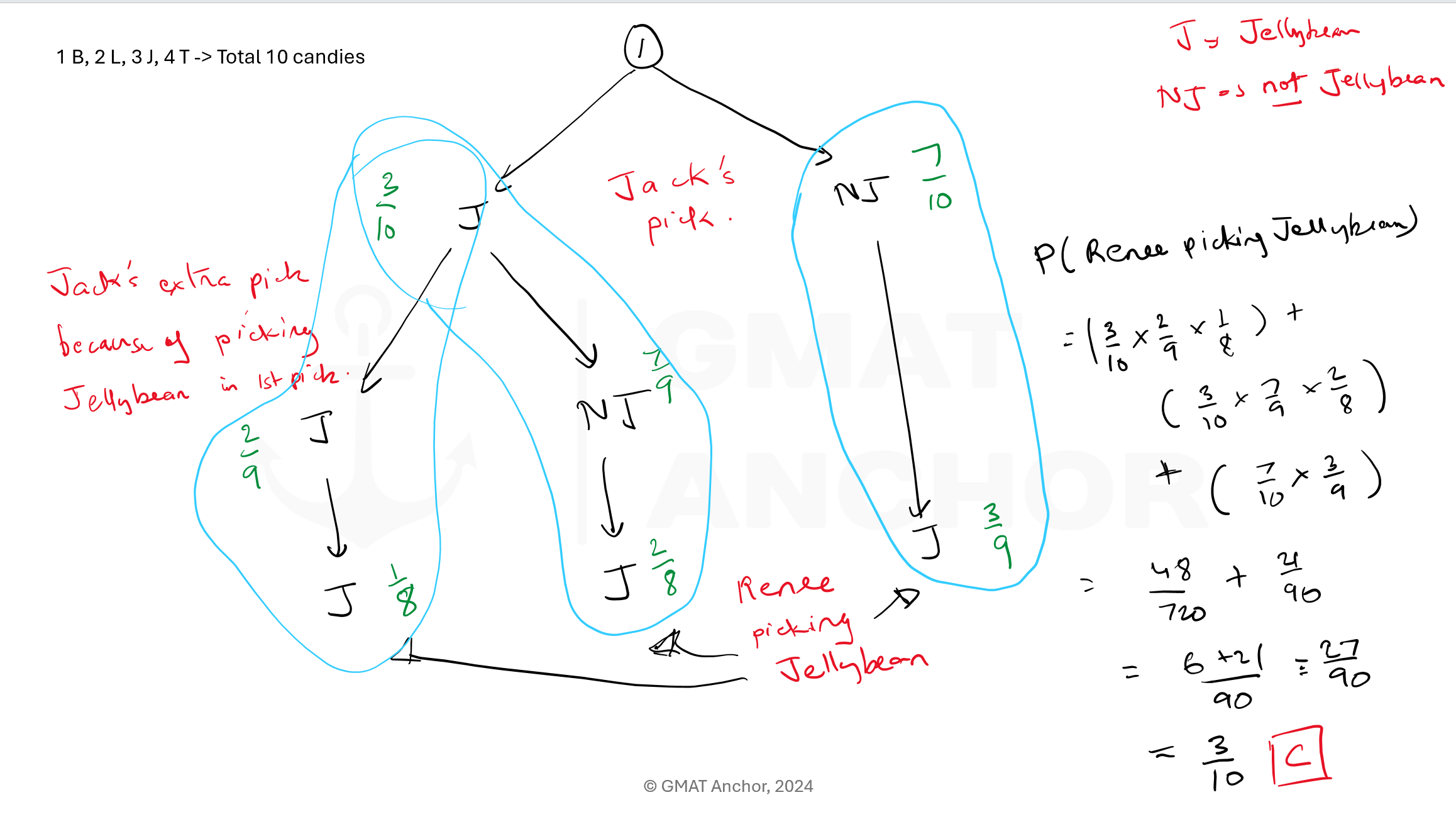 Note: as long as Jack gets a Jelly bean he has to pick another candy till he gets a Non Jelly Bean.