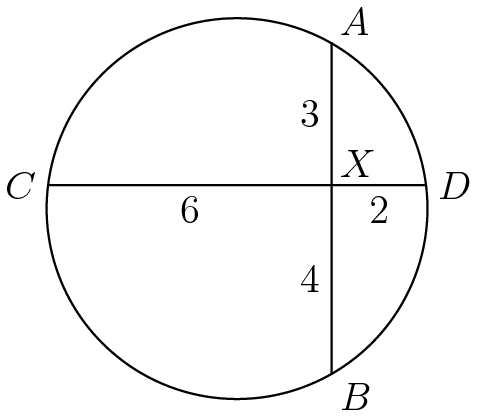 Since AX = 3 and XB = 4, judging by how Chord CD cut Chord AB at a 90 degree angle, the actual Diameter must be underneath CD and will be Parallel to CD. The actual Diameter will Bisect AB when it is Perpendicular to Chord AB.