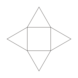 The pyramid will be formed when the 4 equilateral triangles are folded over and converge at the top vertex/apex of the pyramid
