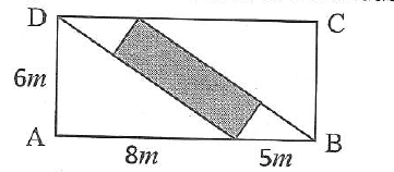 Now, if we start labeling angles, we'll find all the triangles are similar. If you take the point along the bottom where the rectangle meets that line (where the rectangle meets AB), and if we label the angles around that point, we have a 90 degree angle in the middle, since it's an angle in the rectangle. Then if the angle on the left (the one in the 6-8-10 triangle) is x, the angle on the right is 90-x, because the three angles in a straight line add to 180. But now in the lefthand triangle we have now have labeled two angles, 90 and x degrees, and the third angle in the top left corner must be 90-x degrees, because angles in a triangle sum to 180. Similarly we have two angles in the small bottom righthand triangle, 90 and 90-x degrees, and the third angle (at point B) must be x degrees.
