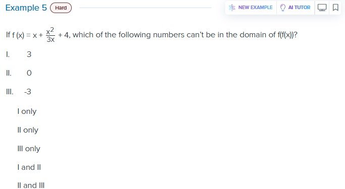 Now, we see the problem. When x = 3, the outer function f(x) tries to divide by 3*3, which is zero.