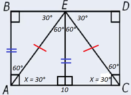 Good questions: So, we need to find the length of EF (which is equal to AB). Notice that triangle AFE is a 30-60-90 triangle, where AF = 5.