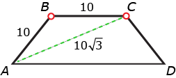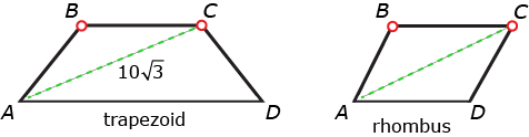 Notice that either picture is possible, as long as the length of the diagonal is longer than that of a square with sides 10. That diagonal would have length 10√2. Since 10√3 is longer, we have the two possibilities above. The trapezoid actually contains the rhombus, so it has a larger area.