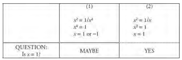 In a Yes/No question, when evaluating the statements, always try to determine whether the question can be answered the same way under any possibility that is consistent with those facts. Simply checking to see whether the question might be true given the facts from the statements is sloppy, and will often lead to an incorrect answer. |