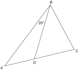 m∠BAC = 180 – 120 – 20 = 40 degrees.