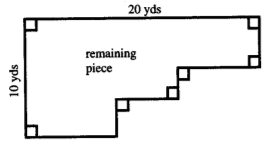 I have assumed the three non-measured horizontal lines to be 'x', 'y' and 'z' while I have assumed the three non-measured vertical lines to be 'a', 'b' and 'c'. (other sides are already measured/marked as 10 yards and 20 yards)
