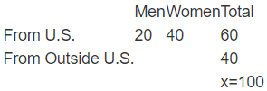 (2) 20% of the staff, or 20 individuals, are men from the U.S.; there are twice as many women from the U.S. as men from the U.S.