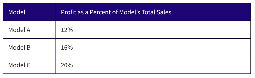 We are able to find profit from sale of Model A as a percentage of total profit.