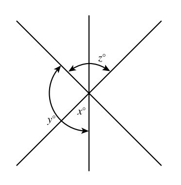 Evaluating statement (2) alone: Imagine the two lines that make the big X in the diagram fixed in place. Could we rotate the line that is currently vertical without impacting angle z? Yes, and that would change the value of x as we did. So we don't know the value of x. Does statement (2) alone give us enough information to answer the question? No. CE