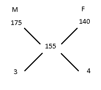 (1) Of everyone in the group, 3/7 are men and have an average weight of 175 pounds.