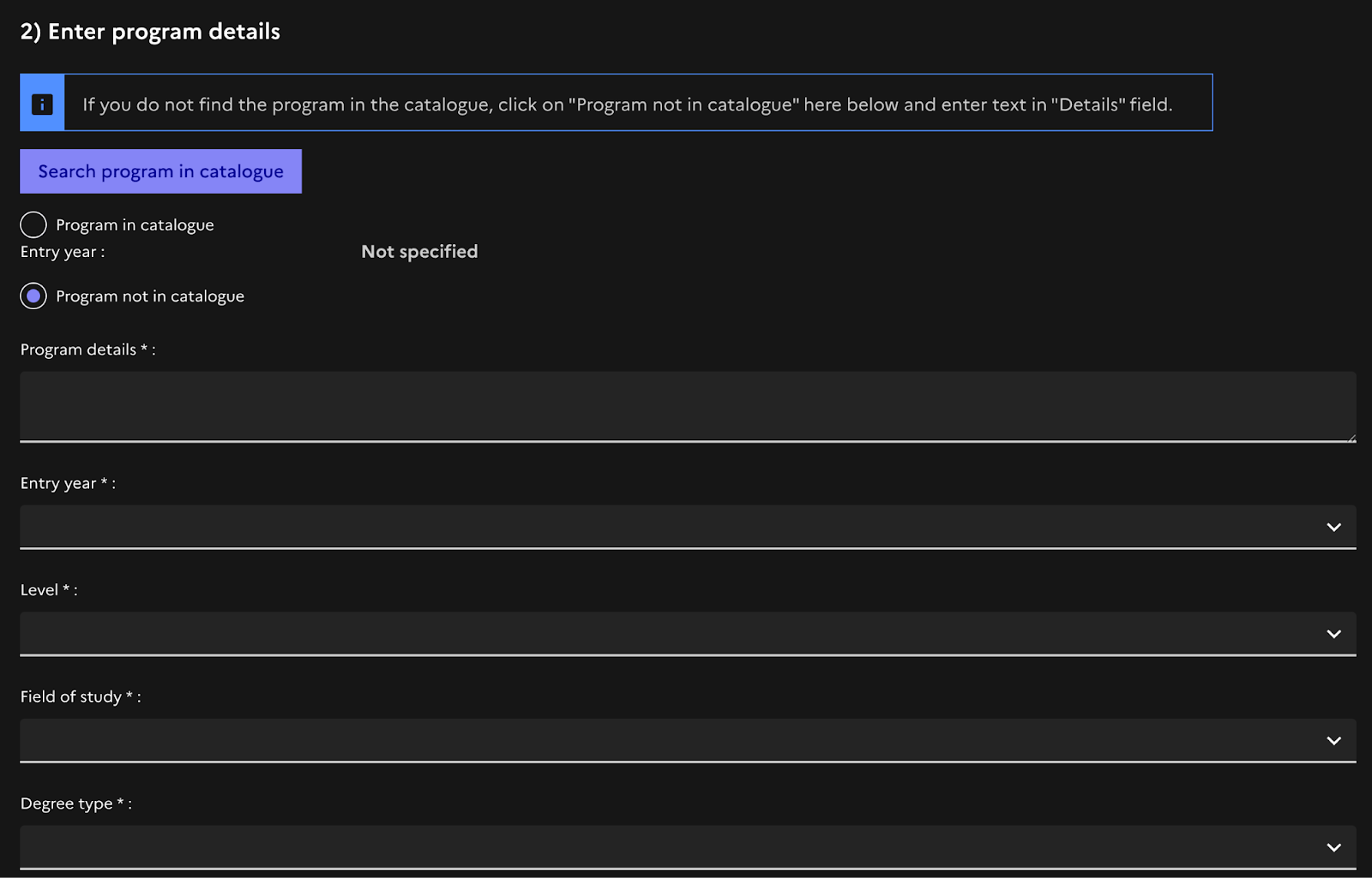 Step 3: Enter Program Detail (I got admission from ESSEC MIM, so I filled it accordingly)