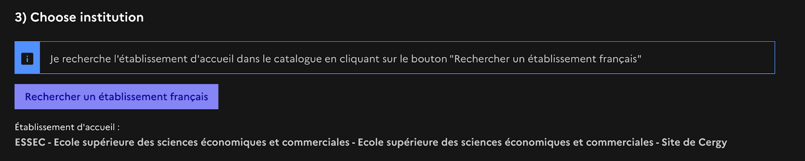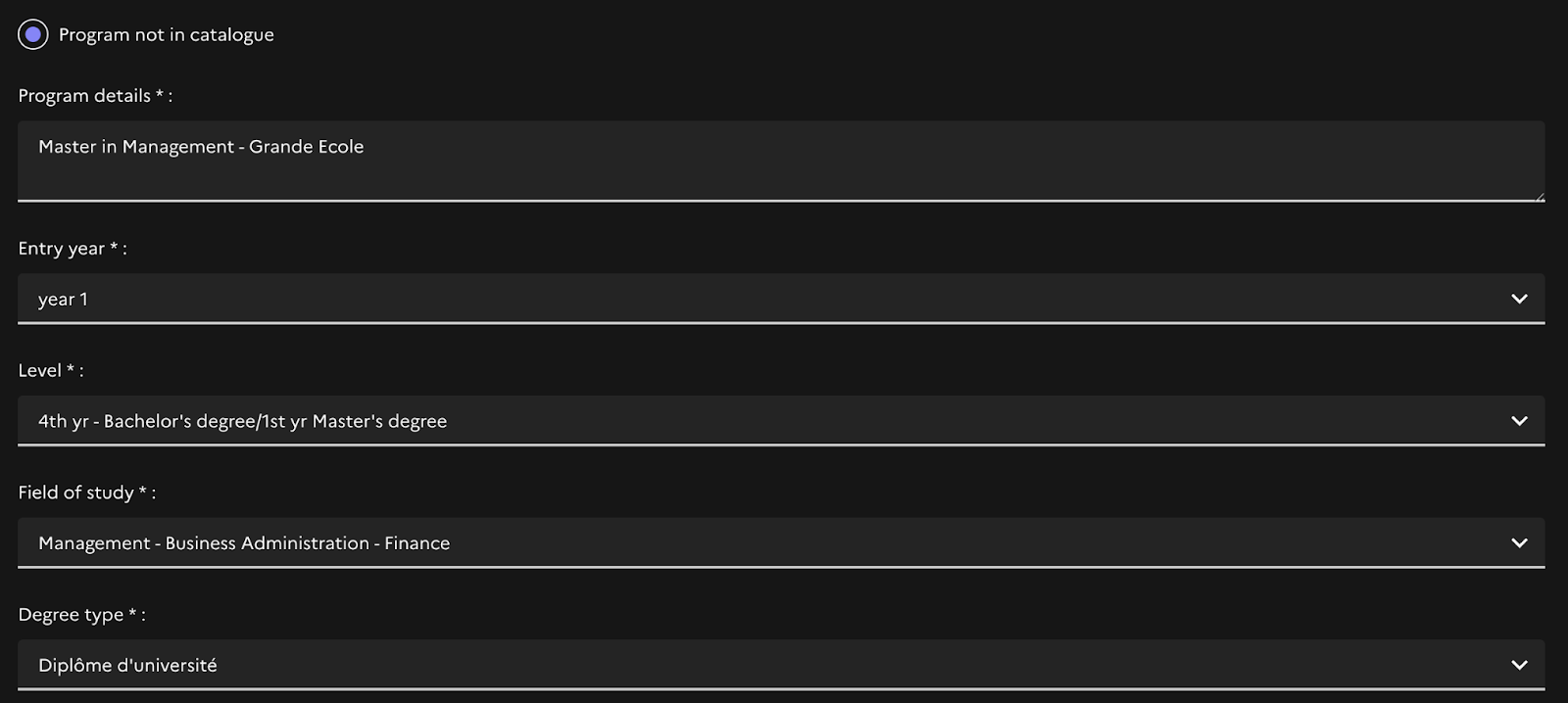 So ESSEC was not in the catalogue, so I opted got Program not in catalogue
