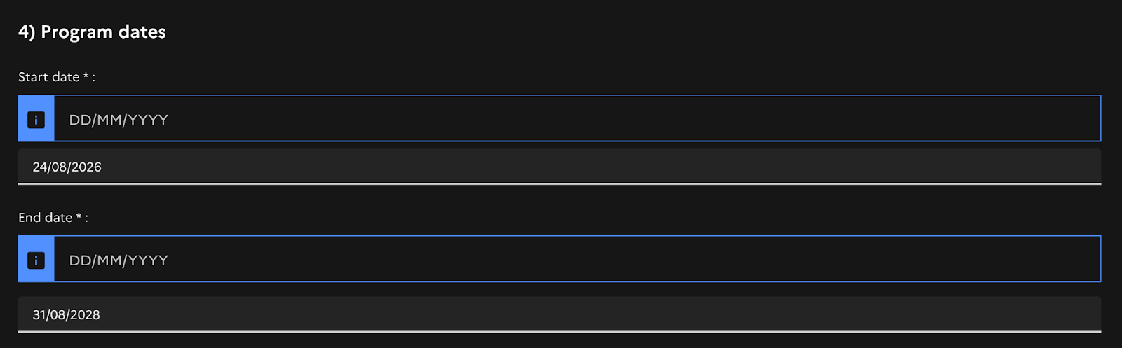 Step 4: Choose an institute from which you got admissionThen I entered the program dates and a short essay