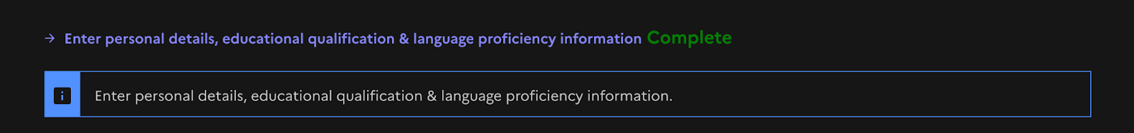 Now, After Uploading all the documents, go back and start the next process that is Personal Details, Education Qualifications and Language Proficiency