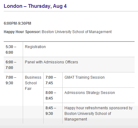 A great event for all those applying this year to meet schools, hear application advice, and check out your competition!Find the right MBA program for you with seminars, meet-and-greets, and admissions advice.- Engage with schools one-on-one in an open networking session—over 30 top schools (see the full list below)