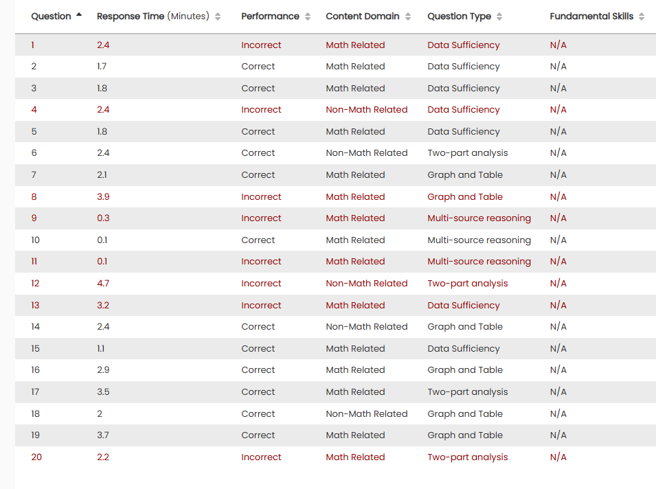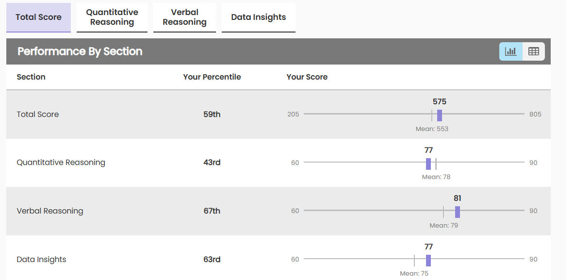 I'm puzzled because I did quite well in Quant (18/21 correct), and my Verbal (18/23 correct) and DI (12/20 correct) sections didn’t seem bad either.