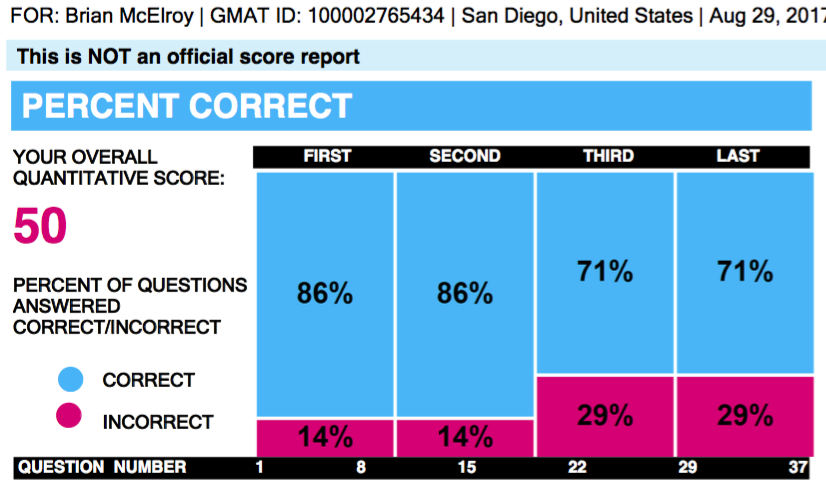 It is a common misconception that your GMAT score is a direct reflection of how many questions you answer incorrectly. In point of fact, precisely where you get the questions wrong matters just as much as how many questions you answer incorrectly, especially on Quant, thanks to the adaptive scoring algorithm.