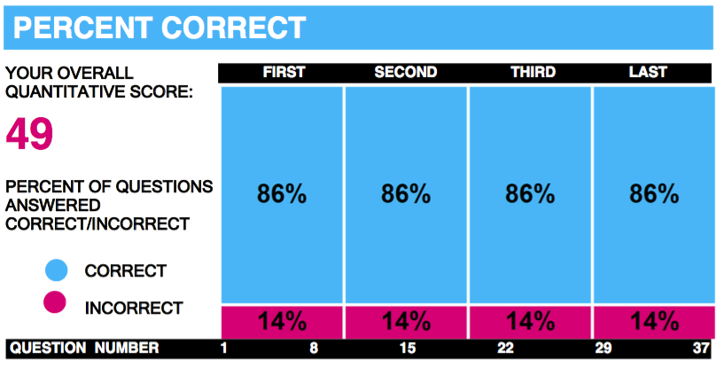The difference? It's hard to say given the incomplete data, but if I had to guess I would say that I performed better on the first 10-12 questions of the test, earning me a higher level of difficulty throughout the remainder of the Quant section.