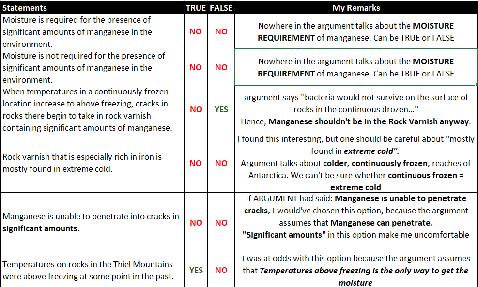 | True | False | Statements |