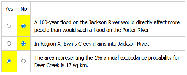 | A 100-year flood on the Jackson River would directly affect more people than would such a flood on the Porter River. | ||