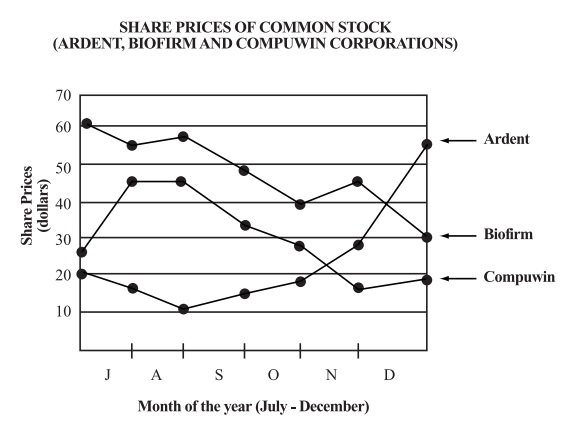 30. At the end of september, the combined share price of ardent stock and biofirm stock exceeded the share price of Compuwin stock by approximately