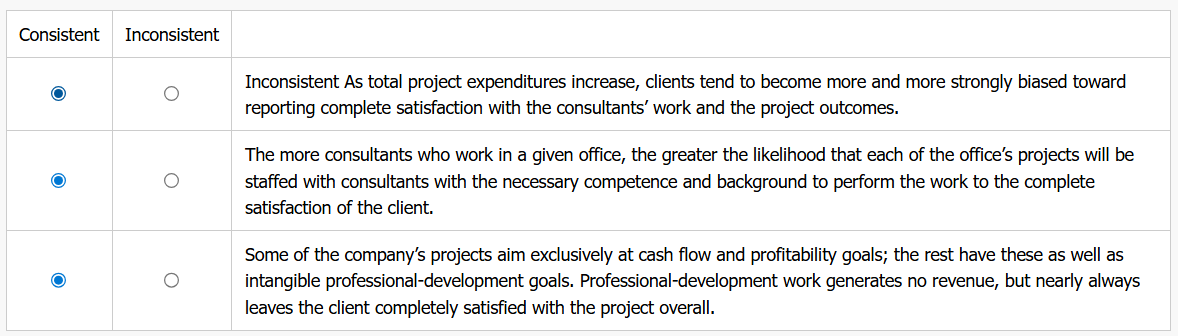 | As total project expenditures increase, clients tend to become more and more strongly biased toward reporting complete satisfaction with the consultants’ work and the project outcomes. | ||