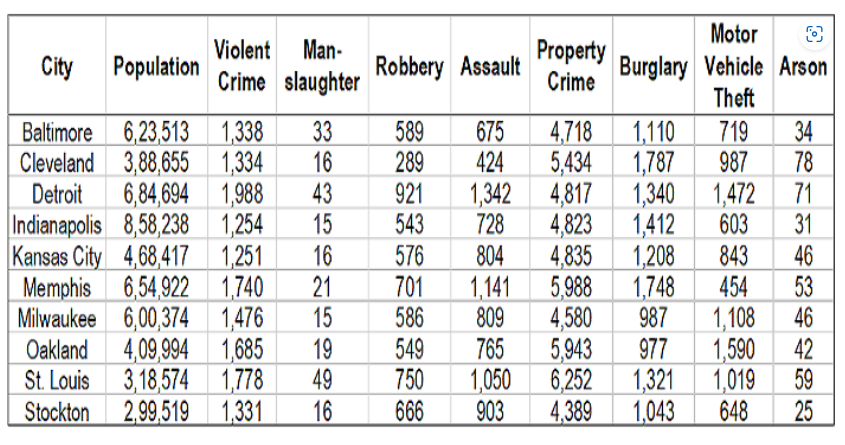 Crime Statistics are listed for US cities. Rates are based on cases per 100,000 people for all of calendar year 2024