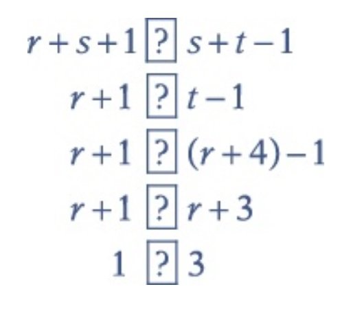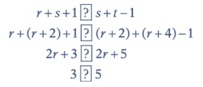 - Simplification 1: Begin simplifying by expressing s and t in terms of r. The steps in this simplification can be done as follows. In the last step of the simplification, you can easily see that . If you follow the simplification steps in reverse, you can see that the placeholder in each step remains unchanged, so you can conclude that Quantity B is greater than Quantity A, and the correct answer is Choice B.