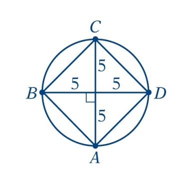 One of our circle properties tells us that this diagonal must be the diameter of the circle, which we know is 10