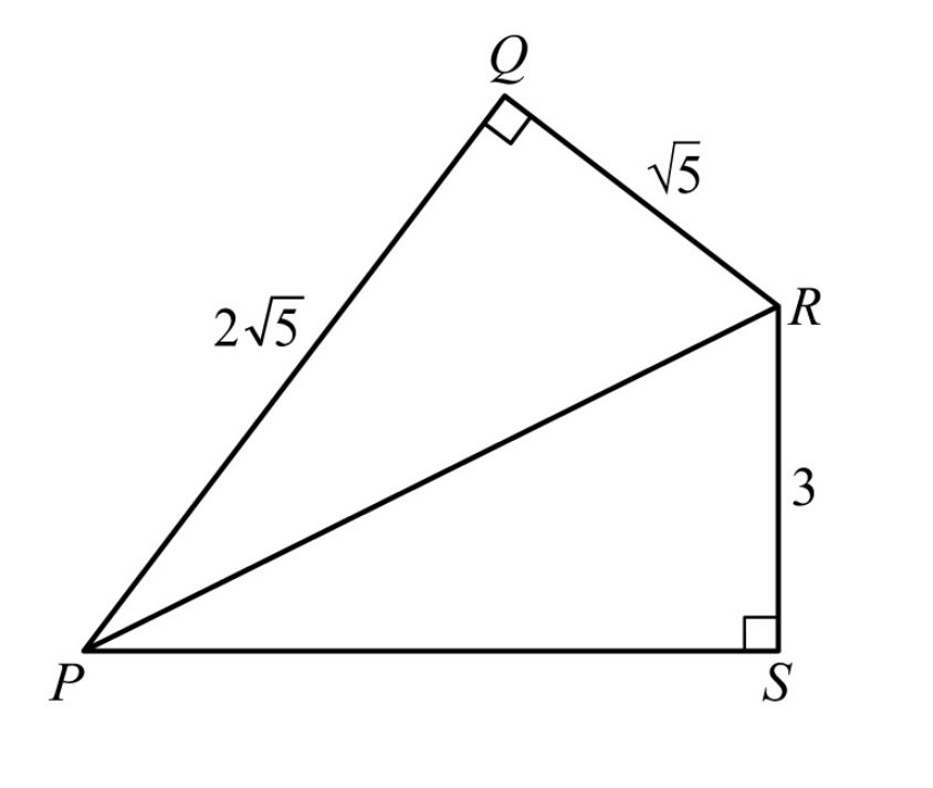 Recall that PR is also the hypotenuse of triangle PQR. The lengths of legs PQ and QR of triangle PQR are \(2\sqrt{5}\) and \(\sqrt{5}\), respectively. By the Pythagorean theorem,